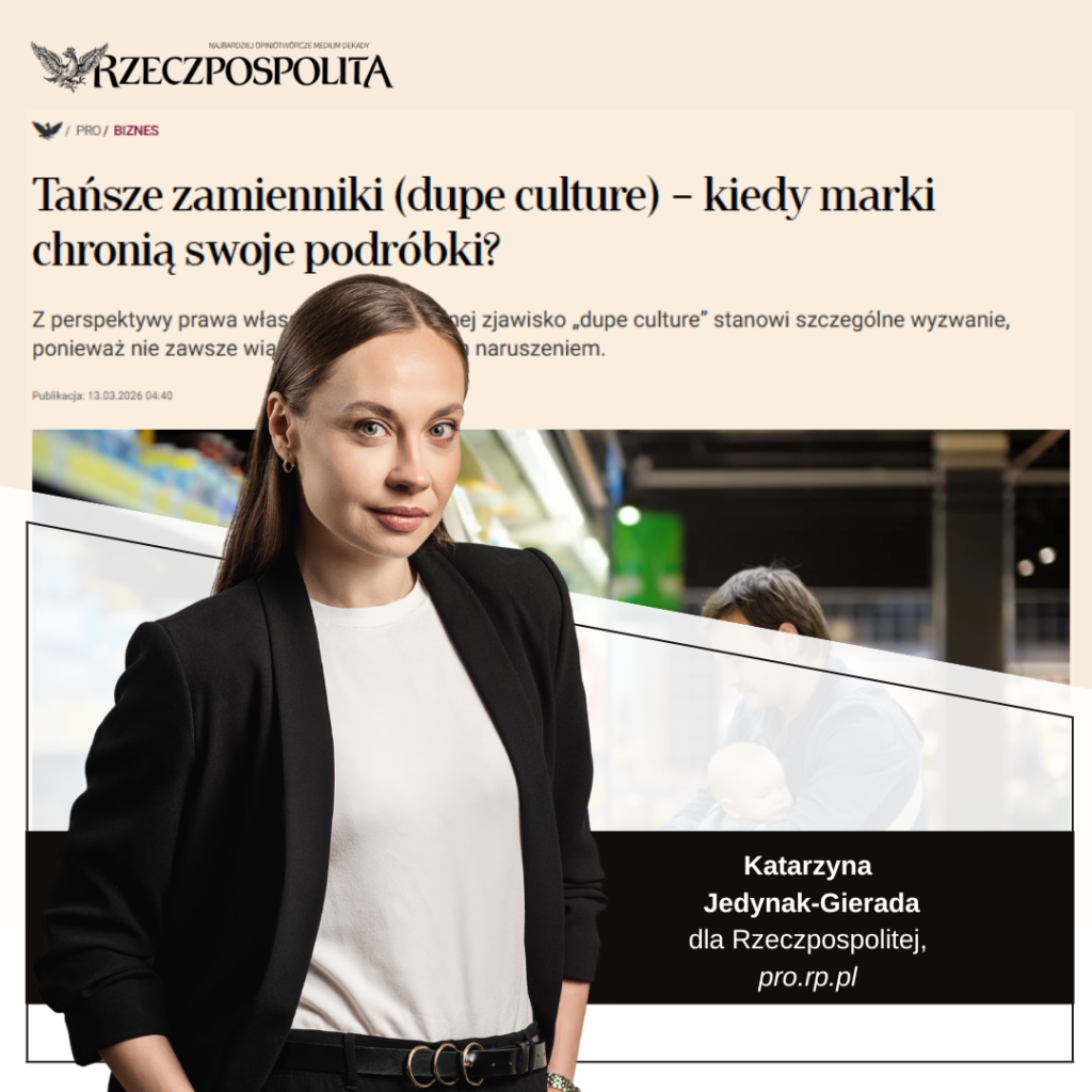 O tym i o wiele więcej dowiedzą się Państwo z artykułu Katarzyny Jedynak-Gierady, który ukazał się w serwisie pro.rp.pl Tańsze zamienniki (dupe culture) – kiedy marki chronią swoje podróbki?